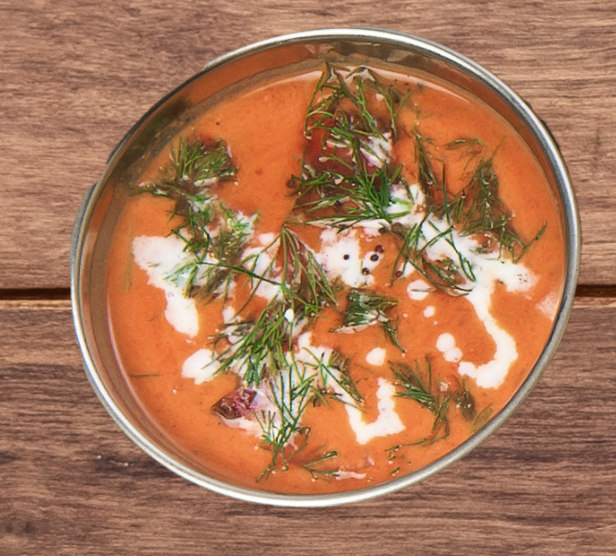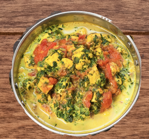 Pieces of goat meat cooked with spinach creamy sauce, freshly ground spices and herbs.