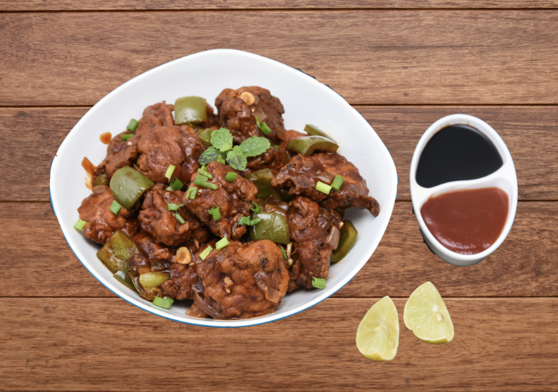 Cauliflower florets dipped in seasoned Batter, fried then sauteed in manchurian sauce.