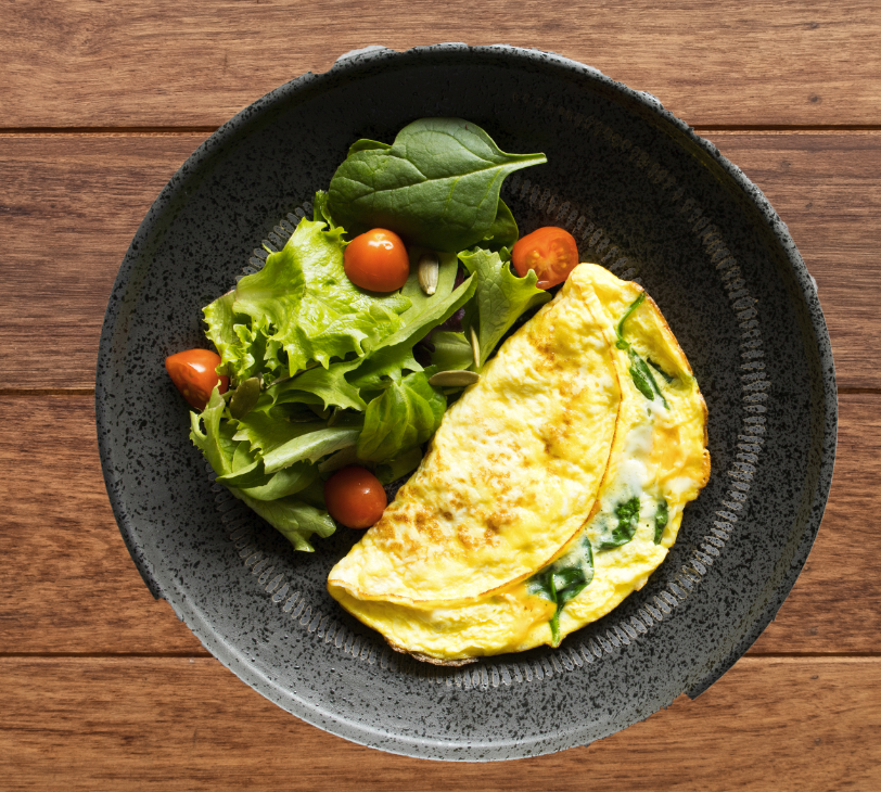 Egg, herbs, tomatoes, onions and spice mixed well to make an omelette.